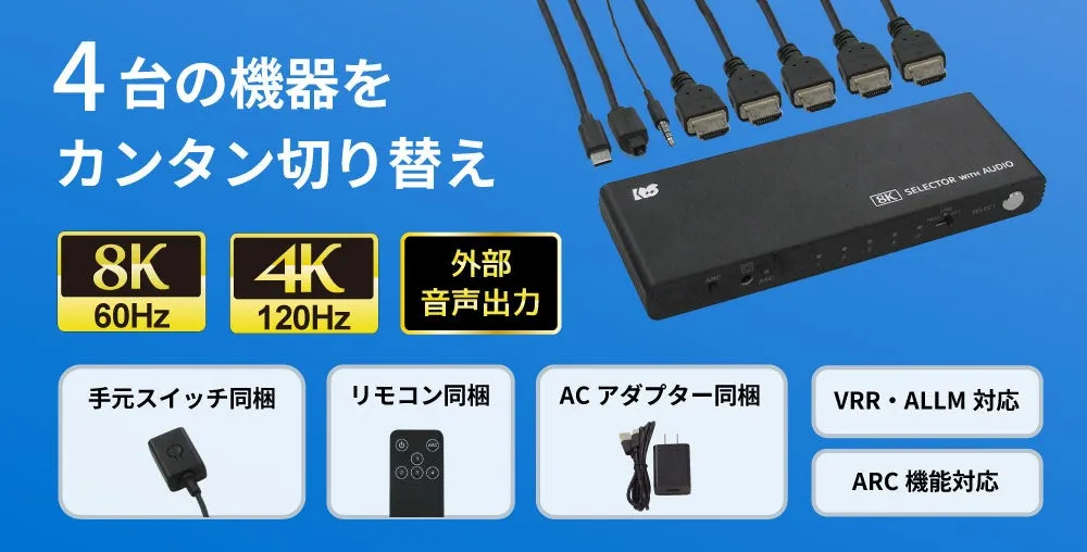 Yahoo! Japan. If you’re looking for a high-performance HDMI switcher that combines excellent video quality with versatile audio outputs, the RS-HDSW41A-8K is an ideal choice.