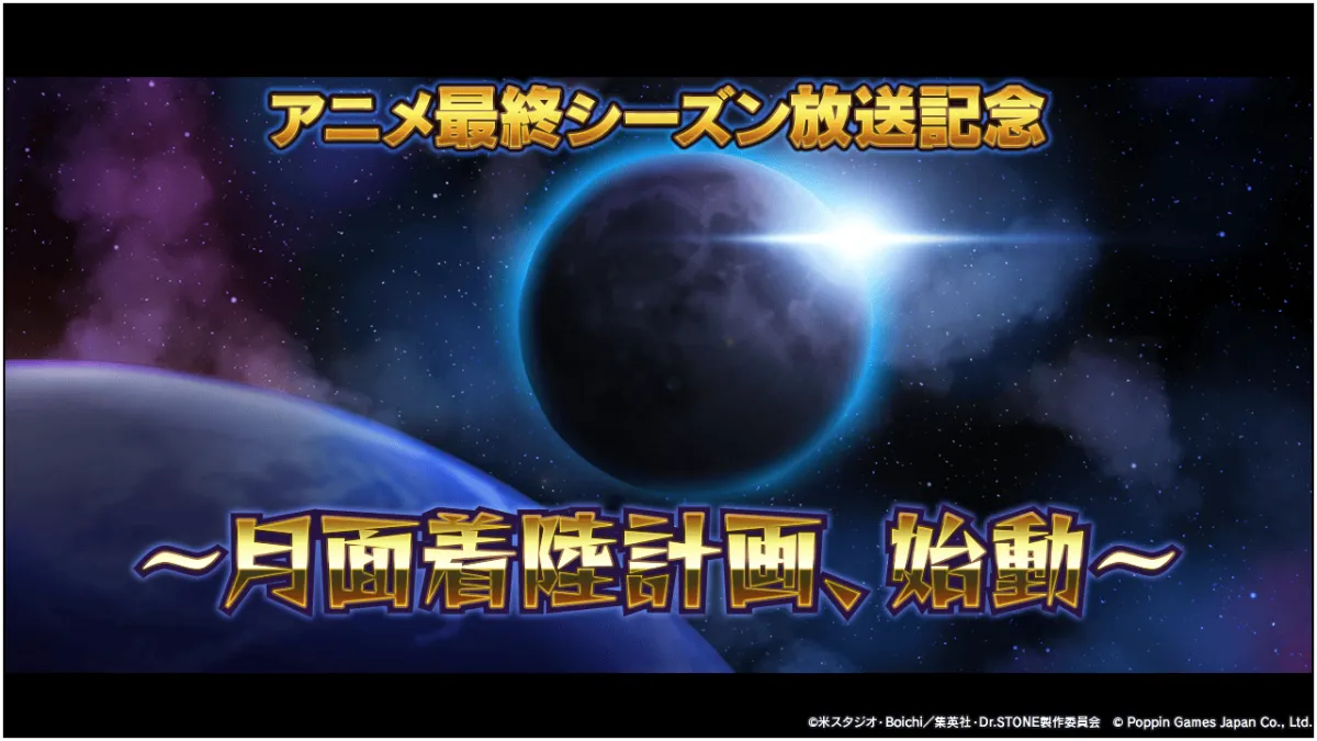 Dr.STONE Battle Craft, available on App Store and Google Play. This event, titled "Anime Final Season Broadcast Commemoration: Moon Landing Project Initiation," features a variety of exciting challenges and rewards.