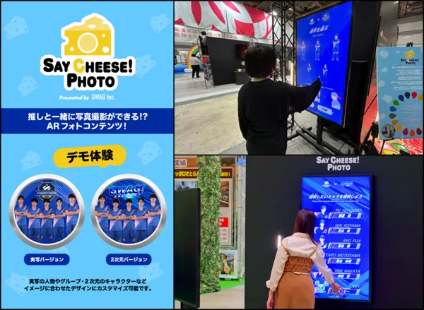 'SAY CHEESE! PHOTO'. This innovative exhibit uses Augmented Reality (AR) technology to allow visitors to take photographs alongside their favorite personalities or characters. The photos can be easily saved to smartphones, facilitating sharing on social media and enabling attendees to relive the experience long after the event is over.
