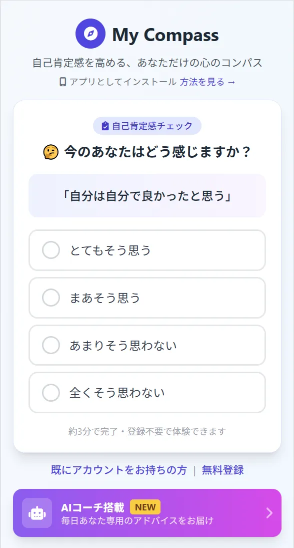 Noriko Kudo emphasizes, "Self-esteem is not merely an innate trait; it can be cultivated through small daily habits. After over 20 years of promoting self-esteem awareness, I've concluded that a persistent tool is necessary for continuous improvement. My Compass serves as that supportive partner, guiding users daily towards self-appreciation and growth."