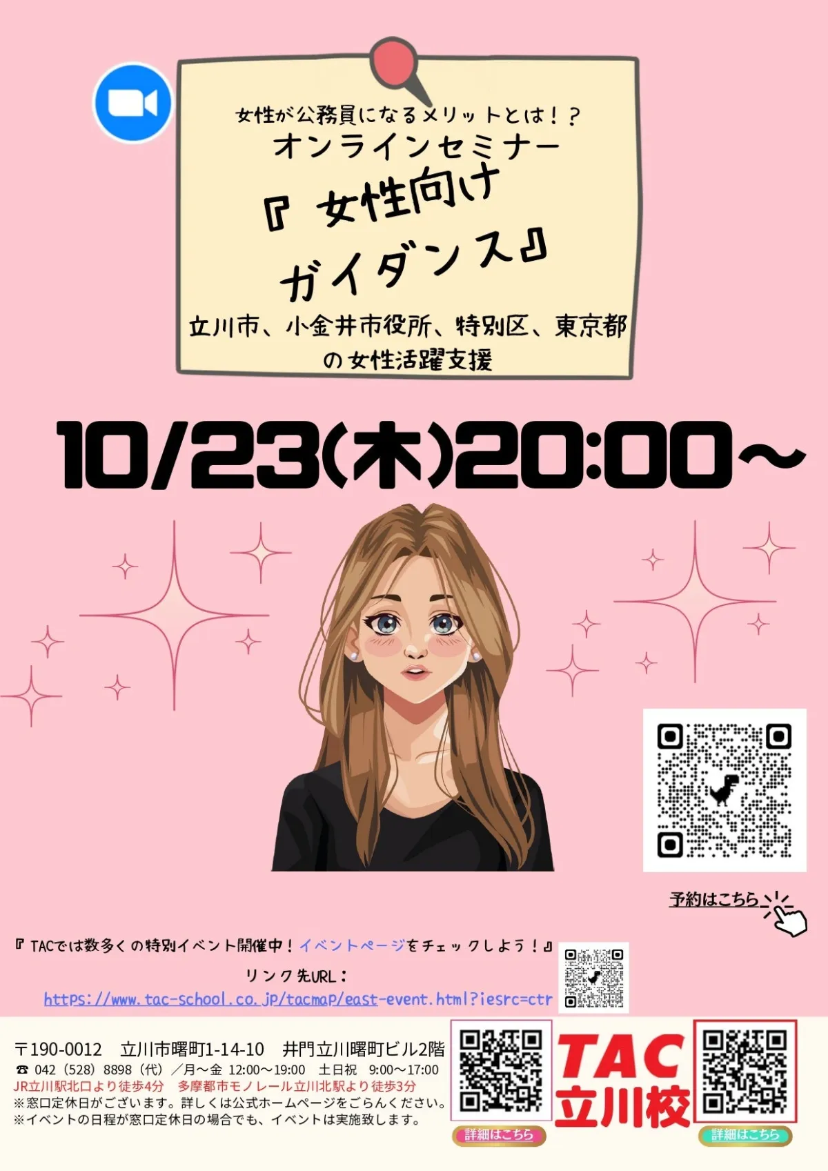 On October 23rd, 2025, at 8:00 PM JST, TAC will host an informative online seminar focused on the many advantages of women pursuing careers in public service. With the growing number of women in governmental roles, this event aims to shed light on what makes these positions appealing and beneficial for women, particularly in various areas such as Tachikawa, Koganei, special wards, and the greater Tokyo area.