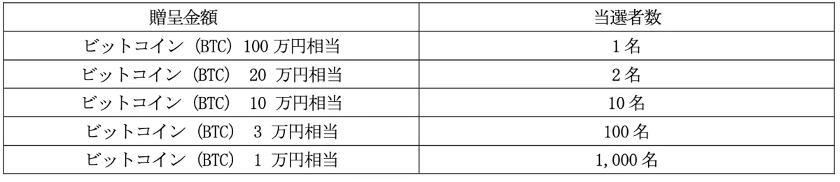 A total of 15.4 million yen worth of Bitcoin will be distributed through a lottery among eligible shareholders. Each participant has an exciting opportunity to be among the lucky winners of this digital currency.