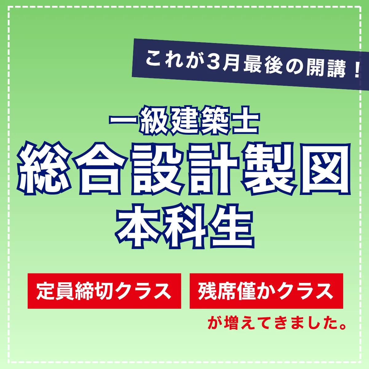 For students aiming to start their preparations early, TAC offers a long-term course that kicks off on March 28 (Saturday) and March 29 (Sunday). This comprehensive curriculum is tailored for first-class architects specializing in design drawing. The class options are diverse, spanning various campuses including Shibuya, Machida, Hiyoshi, Yokohama, Omiya, Tsudanuma, Nagoya, Kyoto, Namba, and Fukuoka, each available on Saturdays or Sundays. However, a final round of lectures is also slated to begin on April 4 and April 5 at Sendai and Tachikawa campuses, promising an excellent opportunity for latecomers to join.
