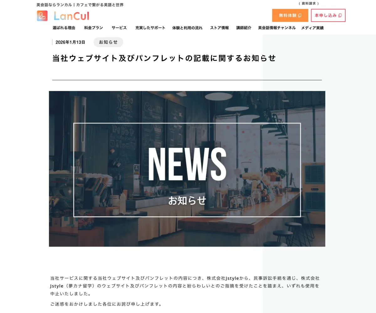 Jstyle Inc., represented by its CEO, Kazutaka Ando, has recently been involved in a significant legal matter concerning copyright infringement with LanCul Inc., led by CEO Shion Sakano. This issue arose when Jstyle discovered that LanCul was using promotional materials that closely resembled their copyrighted works, specifically in landing pages and brochures aimed at attracting customers to its services, including LanCul English conversation programs and study abroad services.