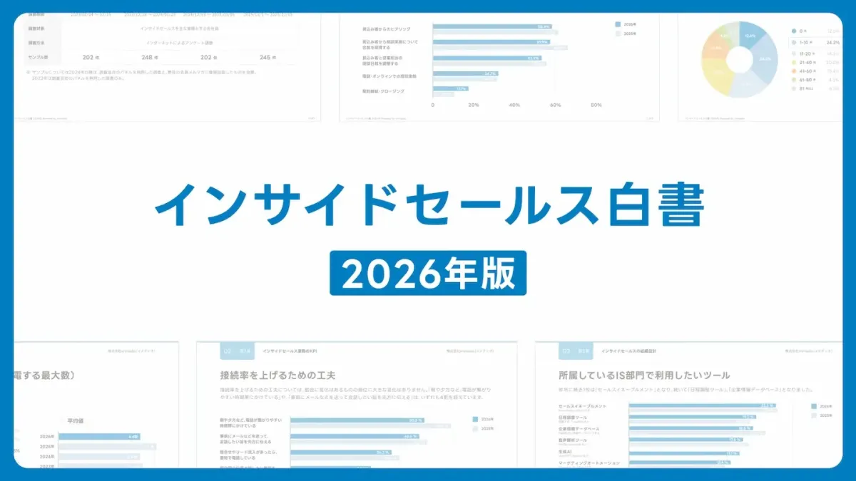 2026 Inside Sales White Paper, reflecting a continued commitment to understanding the dynamics of inside sales in Japan. The report is based on a survey of 245 inside sales professionals and examines the changing landscape of sales metrics, focusing on the shift from 'activity volume' to 'connection rates' in response to industry demands.