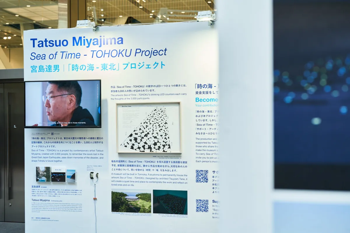 Takemitsu Miyajima, an iconic figure in contemporary art, particularly recognized for his use of digital counters exploring time and life. His special display will be part of the