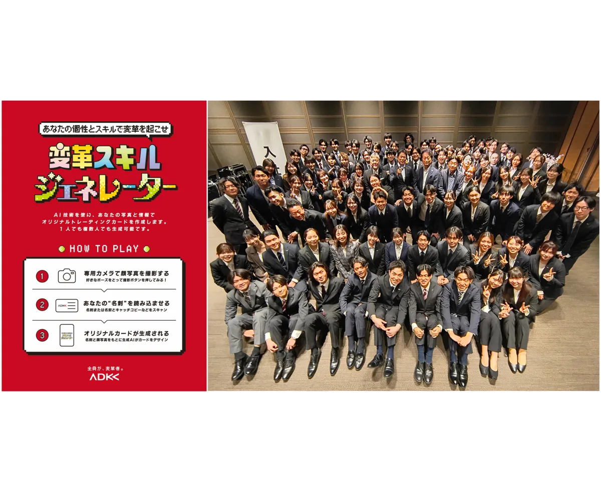 The "Transformation Skill Generator" operates like an arcade gaming machine, equipped with an AI camera and operational buttons. New employees can take a photo of themselves and input personal details about their skills and uniqueness. The AI then analyzes this information to generate a personalized character and skill name, producing a unique trading card for each participant. This initiative is part of the ADK Group's broader strategy to utilize AI both internally and externally, reflecting the values of the company, which promotes the idea that "Everyone is a Change-Maker."
