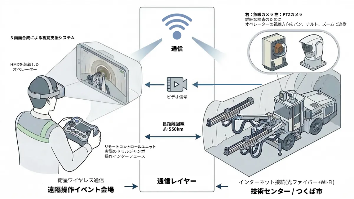 In collaboration with Sato Industries and Furukawa Rock Drill, Pocket Queries conducted a groundbreaking project aimed at enhancing the safety and efficiency of tunnel construction. The trial took place between a construction site in Anan City, Tokushima Prefecture, and their technology center in Tsukuba City, Ibaraki Prefecture, spanning approximately 550 kilometers. Through the integration of public internet infrastructure and advanced technology, they successfully demonstrated a remote control environment.