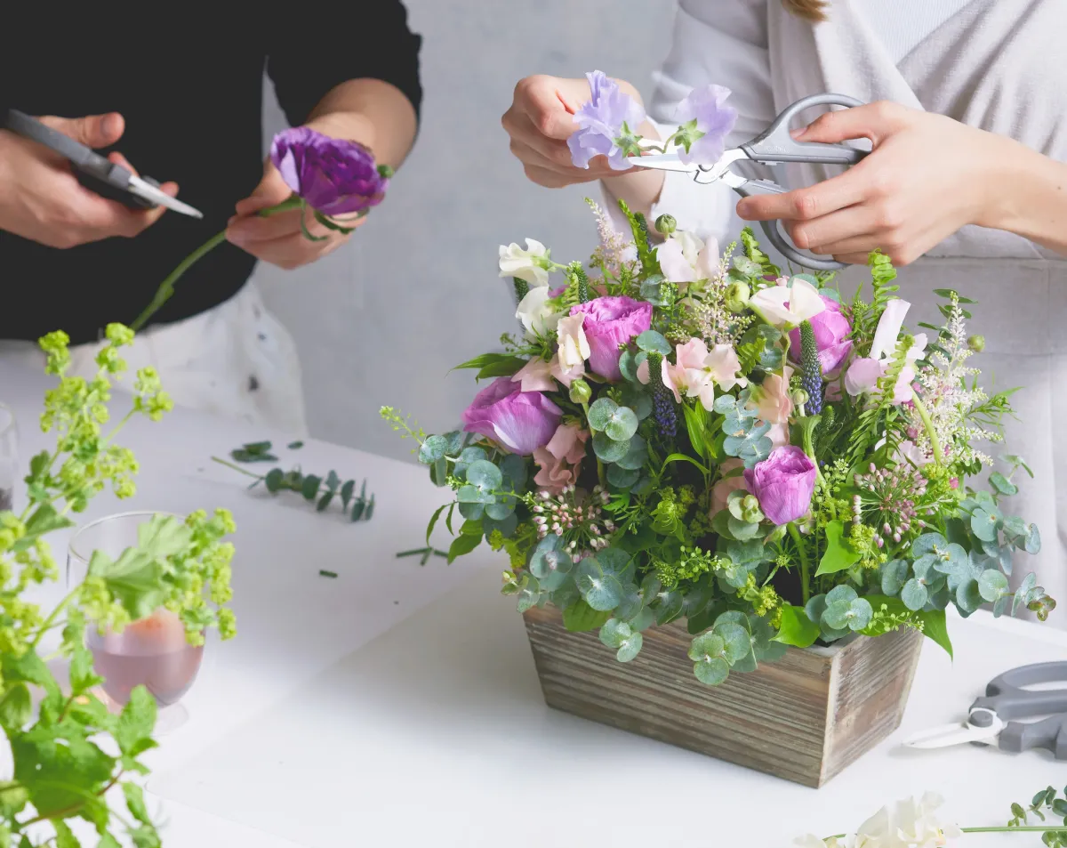 The open and bright space of the classroom encourages a relaxing learning environment. Students can enjoy refreshments, including coffee and tea, which enhances the overall experience. The courses aren’t just educational; they are a chance to unwind and express creativity while crafting beautiful arrangements.