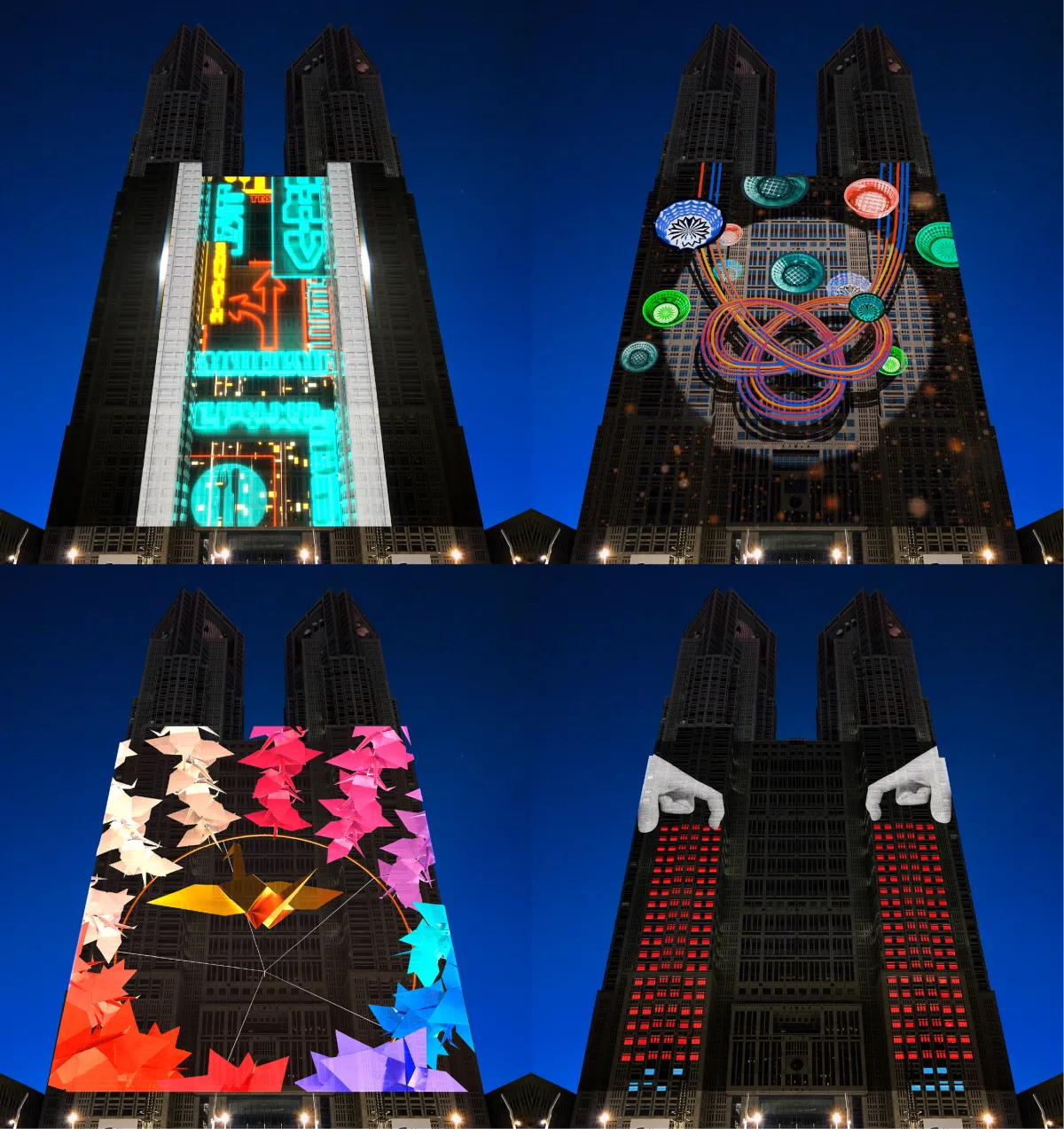 The project runs daily, assuming favorable weather conditions. The projection takes place on the east wall of the Tokyo Metropolitan Government Building, with public viewing available at the Citizen's Square (2-8-1 Nishishinjuku, Shinjuku, Tokyo).