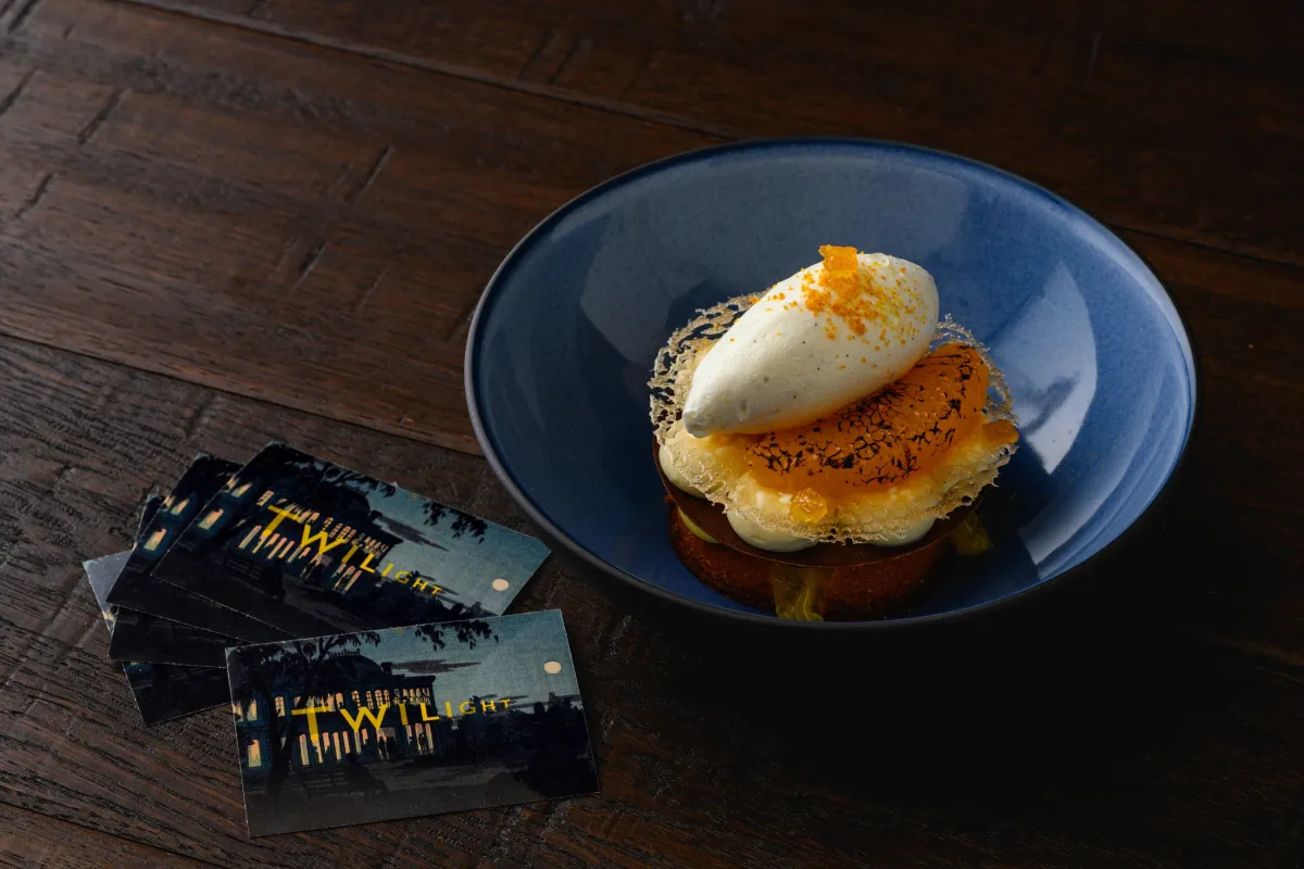 One standout item is the Dekopon Citrus and Financier Tart garnished with Ricotta Milk Sorbet. Inspired by the delicate transitions of light and shadow in the