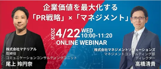 Management Solutions Inc. (MSOL), headquartered in Minato, Tokyo, is thrilled to announce a collaborative webinar with Material Co., led by CEO Akasaki So. The webinar, titled "Maximizing Corporate Value through PR Strategies and Management," targets corporate management and executives. Scheduled for April 22, 2023, from 10:00 to 11:20 AM (JST), this session will explore how businesses can transition from a wait-and-see approach to a proactive PR-driven strategy in a rapidly changing global marketplace.