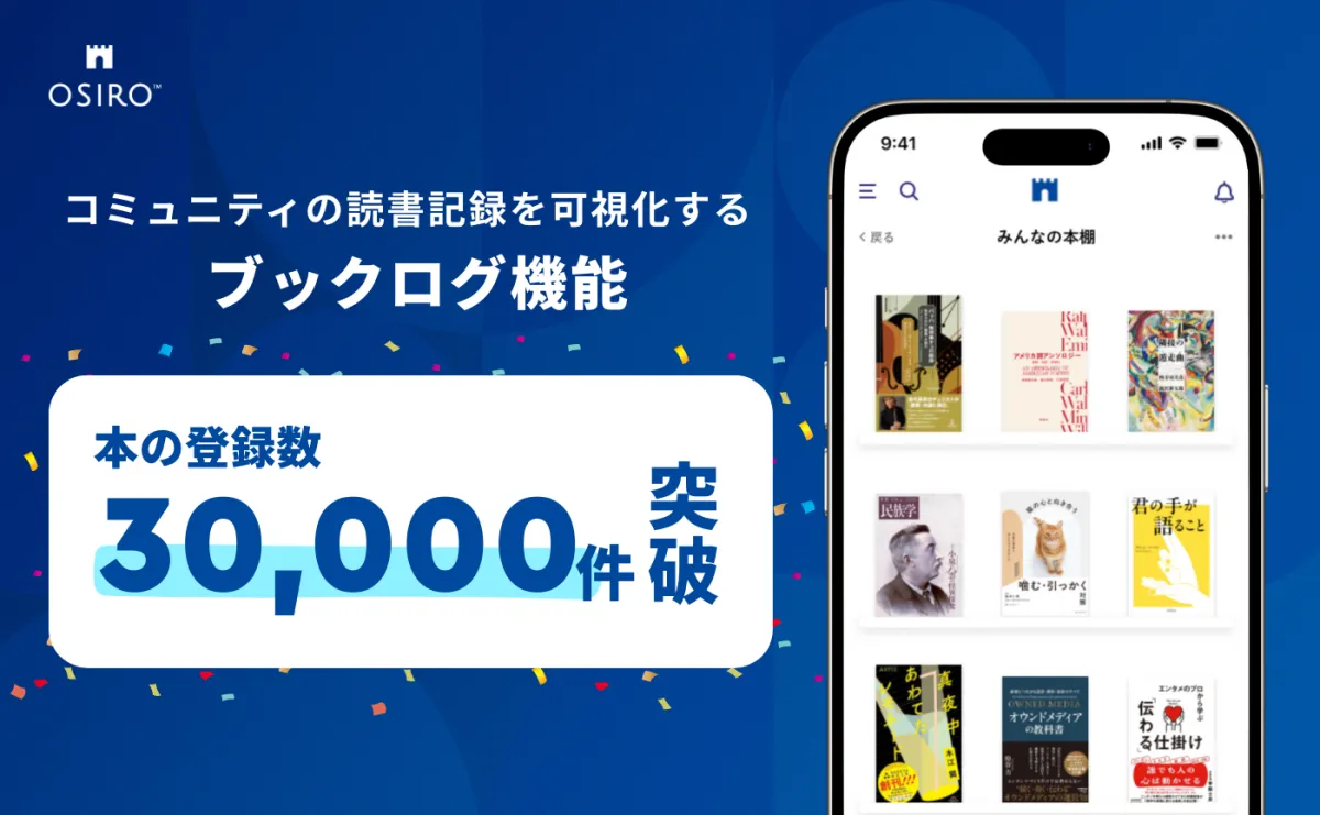 Osiro Inc., based in Shibuya, Tokyo, has made headlines with their unique community platform "OSIRO," allowing members to share their reading experiences through a new feature called "Book Log." Recently, the platform announced that the total number of registered books has surpassed an impressive 30,000.