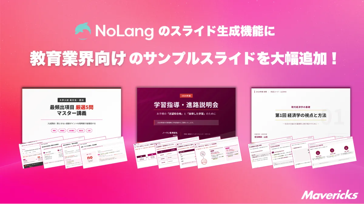 The Japanese company Mavericks has recently made notable improvements to its video generation AI, NoLang. These enhancements include the addition of sample slides designed specifically for the education sector. This development allows educators to create high-quality video learning materials effortlessly, simply by inputting PDF files of their teaching materials.