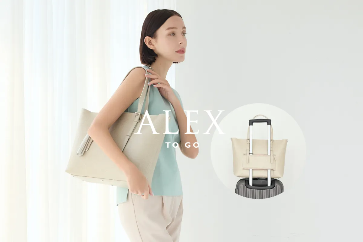 ALEX bag, FUMIKODA's best-selling product, has raised the bar by combining style and practicality. Many loyal customers expressed a desire for a feature allowing the bag to be secured to a trolley case, and thus, the