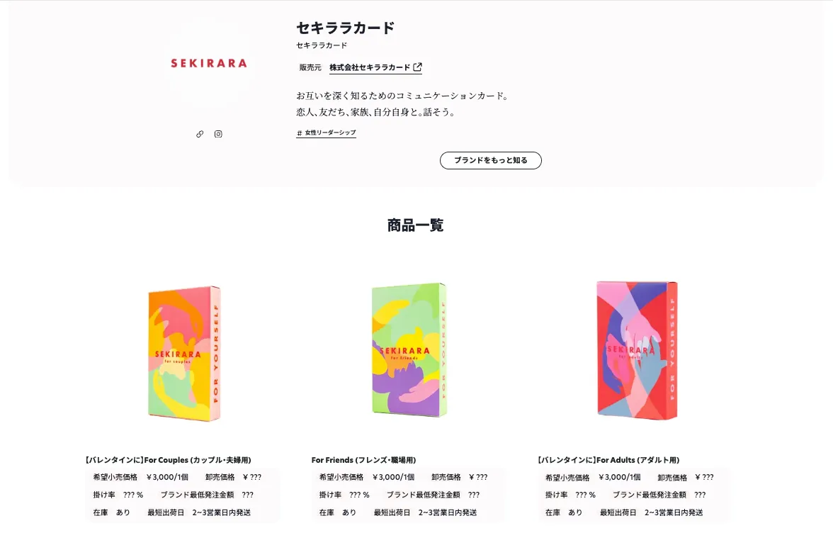 Goooods is a wholesale platform built on the principles of “Find”, “Unite”, and “Nurture”, specifically designed to support brand growth. It simplifies burdensome manual processes through effective credit management and payment functionalities, ensuring smooth transactions between brands and buyers. Here, carefully curated high-quality brands come together, providing a perfect venue for Sekirara Card to reach a wider audience without compromising its distinct storytelling.