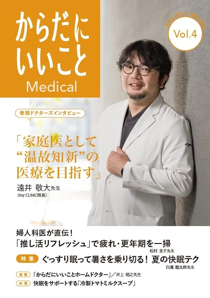 In this issue, we are thrilled to have Dr. Takahiro Toi, the director of my CLINIC, featured on the cover with an in-depth interview. He shares his aspirations as a family doctor focusing on the principle of “learning from the past to innovate.” As a practitioner who treats everything from pediatric patients to emergencies, Dr. Toi discusses his inspirations and dedication to community-centered healthcare. His comprehensive approach extends beyond individual patients to the ‘Family Tree’ concept, emphasizing overall family health, all within an accessible clinic setting.