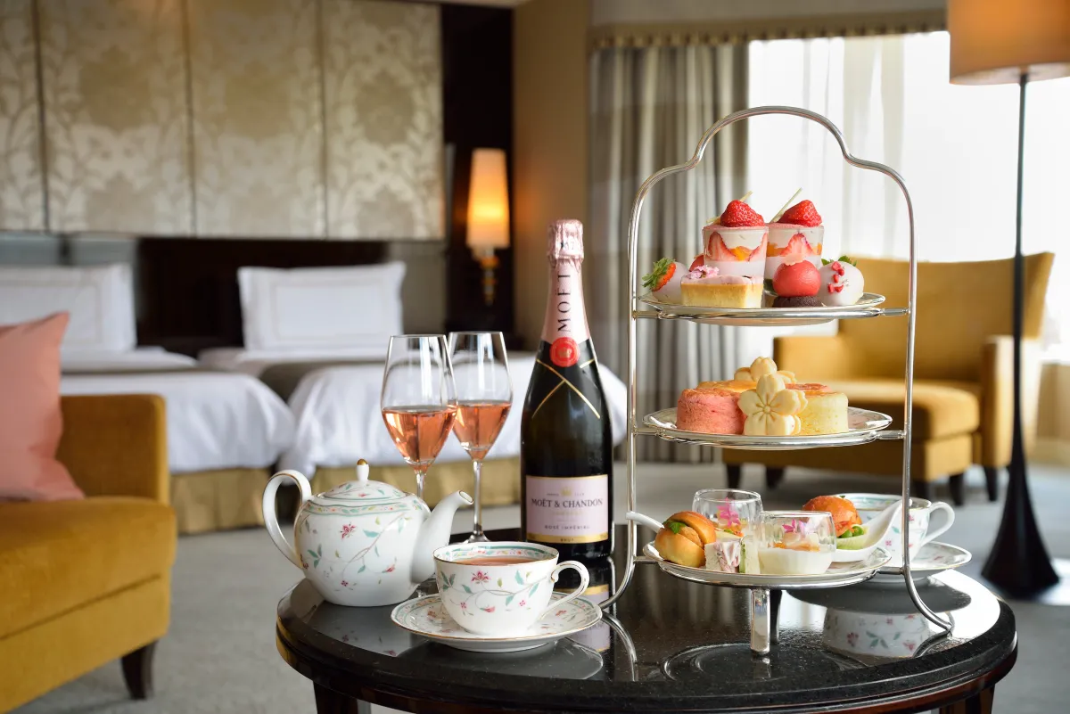 One of the highlights of the stay is the exclusive “Luxury Afternoon Tea in the Sakura View Bath Suite.” This special accommodation allows guests to indulge in an afternoon tea experience in the hotel's only blooming view suite. Imagine soaking in a cherry blossom-scented bubble bath while sipping rosé champagne and taking in the beautiful cherry blossom scenery from the window. Guests will also enjoy a seasonal cherry blossom and strawberry-themed afternoon tea served in-room, along with a collection of L'OCCITANE bath amenities and a gift collection infused with sakura essence.