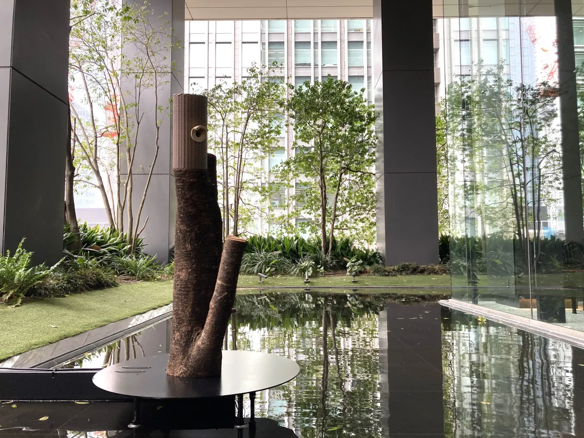 Growing Nest: Created from pruned logs sourced from Otemachi Tower's greenery, this nest box seamlessly integrates into the surrounding flora. Its design offers camouflage, protecting birds from potential threats.
