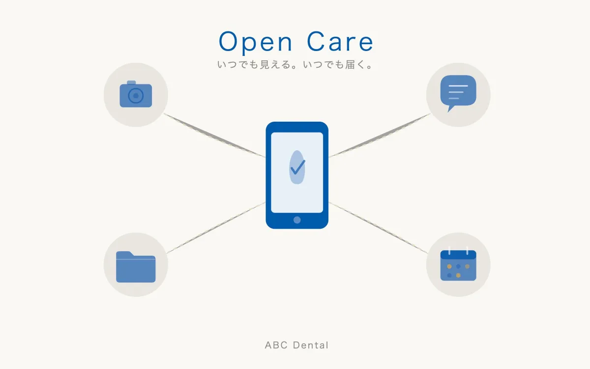 With 'Open Care Record', families can access their child’s orthodontic records and treatment photos digitally. Every appointment results in updated photographs being uploaded to a shared folder specifically for the family. This allows parents to visually track their child's dental progress over time without needing to schedule an additional visit for clarification.