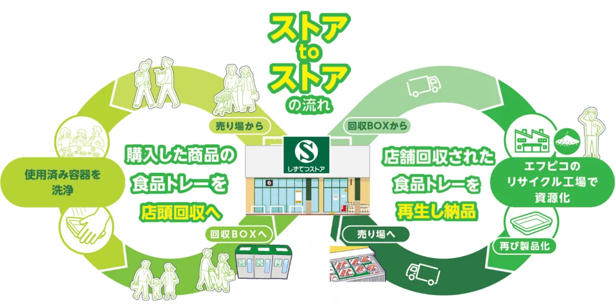 The collaboration focuses on establishing an efficient recycling process by utilizing collection boxes installed at Shizutetsu Store locations. These boxes are designated for used food trays and transparent containers, which are then collected as recyclable resources. Through FPCO's innovative "Tray to Tray" program, these materials are transformed into eco-friendly products, which can be used again in Shizutetsu Store. This creates a circular economy, contributing to waste reduction in the region while fostering a sustainable society.