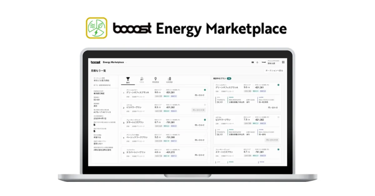 The "Booost Energy Marketplace" is designed to tackle these challenges while facilitating the implementation and monitoring of renewable energy procurement. By integrating analysis factors such as cost competitiveness, stability, environmental value, and community impact, this tool enables cross-departmental decision-making that was previously difficult.
