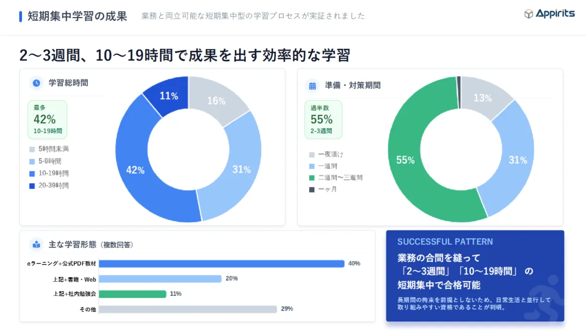 To tackle these concerns, Appirits adopted a concise, focused approach to study preparation. Tools such as “short-term study periods” and “internal study groups” were introduced to create an environment conducive to learning while balancing work commitments.