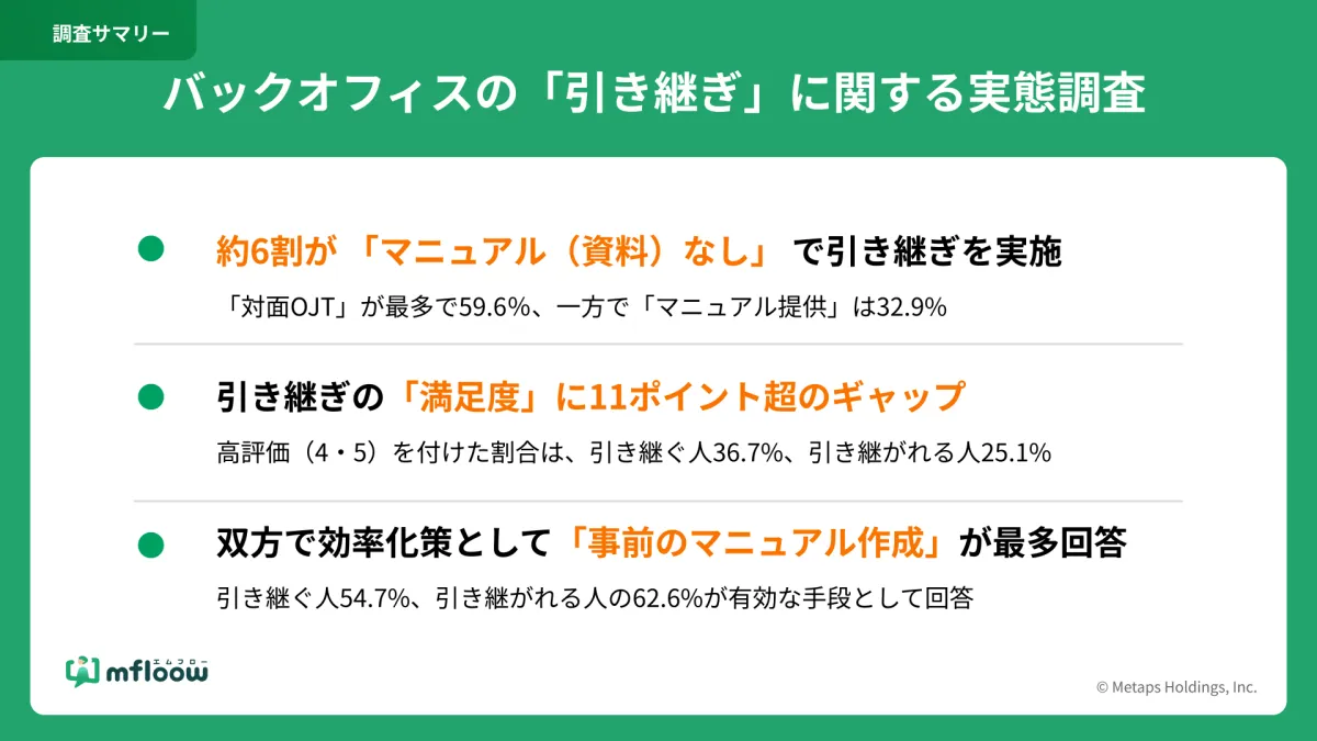 In today's fast-paced world of business, employee handovers are inevitable due to various transitions such as resignations, maternity leave, or departmental shifts. Yet, surprisingly, around 60% of back office professionals conduct these critical handovers without any formal manuals. A recent investigation by Metaps Holdings, targeting 324 back office staff members, has unveiled this startling fact and shed light on the issues faced during the handover process.