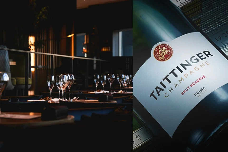 "Celebracion Champagne" emphasizes a selected Champagne house, showcasing a special dinner with the stunning city skyline as a backdrop. This exclusive event will feature the esteemed Taittinger Champagne, a renowned brand founded in 1932, held within the unique hands of the Taittinger family—one of the few remaining family-owned Champagne houses. Known for its delicate yet luxurious style, Taittinger is affectionately dubbed "the Countess of Champagne" due to its rich Chardonnay content.