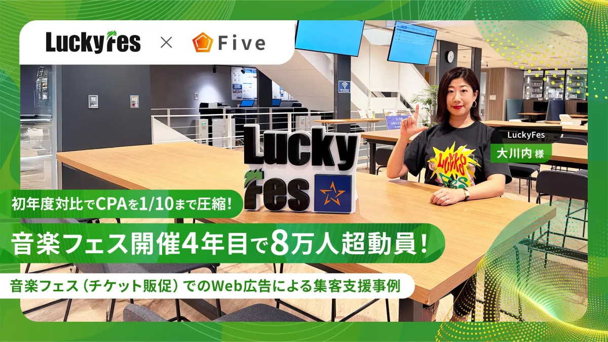 In its fourth year, LuckyFes, an exhilarating music festival held at Hitachi Seaside Park in Ibaraki, Japan, has achieved a remarkable feat by drawing over 80,000 attendees, which is about four times its initial turnout. By partnering with advertising agency Five Inc., they have successfully reduced their cost per acquisition (CPA) to just one-tenth of what it was in the first year through a well-executed web advertising strategy.
