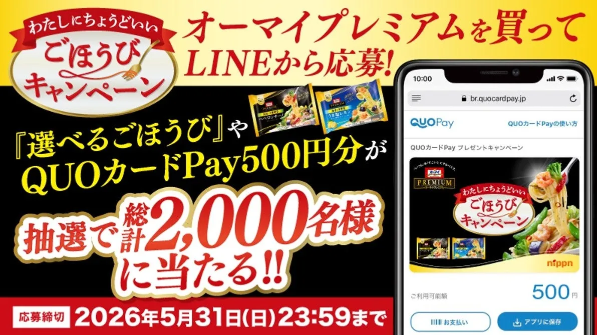 Nippn has announced an enticing campaign called "My Perfect Reward Campaign," which launches on April 1, 2026. This initiative allows customers to participate by purchasing Nippn's Oh My Premium products. The featured reward is the digital QUO Card Pay, an innovative gift card that can be used conveniently via smartphone.