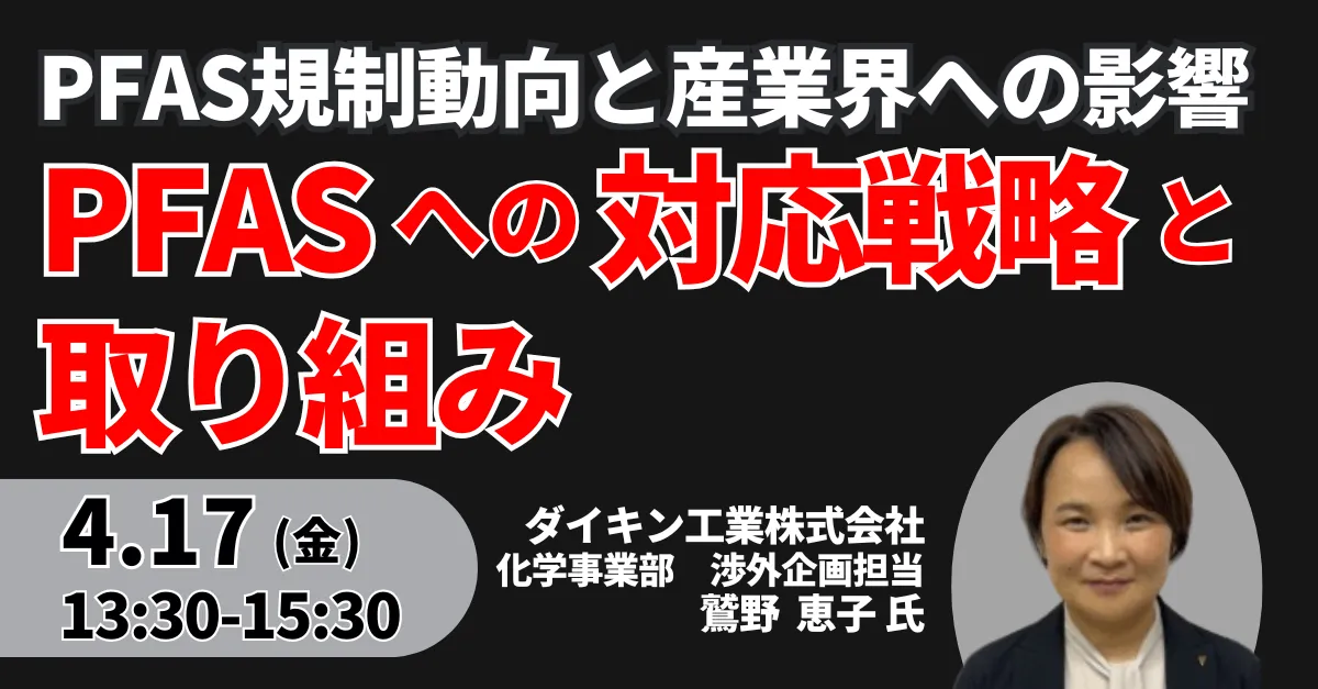On April 17, 2026, the Japan Planning Institute (JPI) will be hosting an informative seminar led by Keiko Washino of Daikin Industries, focusing on the company’s strategies and initiatives regarding PFAS (per- and polyfluoroalkyl substances). With the rising social concern surrounding PFAS and its implications for human health and the environment, this seminar aims to educate participants on the foundational elements of PFAS, current regulations, and Daikin's proactive responses.