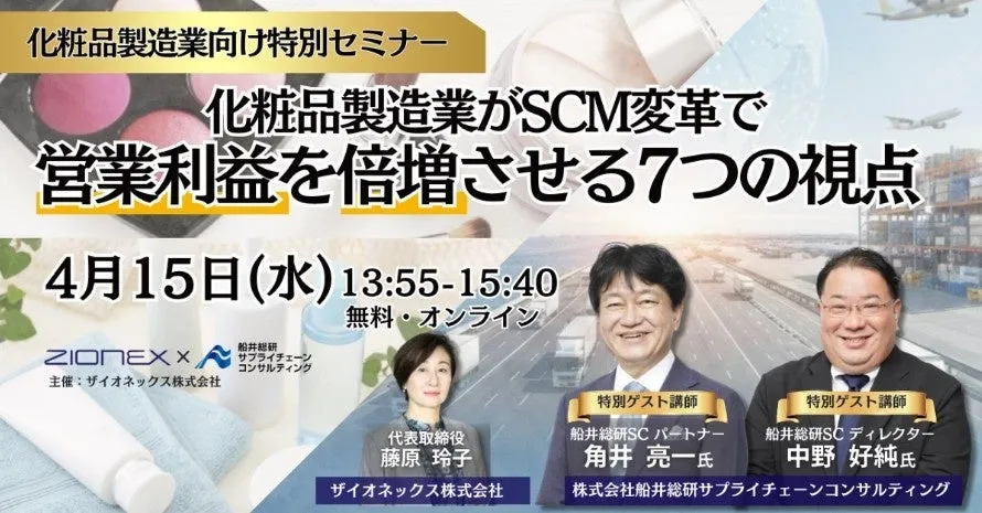 On April 15, 2026, a pivotal seminar titled "How SCM Transformation Can Double Profits in the Cosmetics Manufacturing Industry" took place, hosted by ZIOnex, Inc. This event featured consulting experts from Funai Consulting's Supply Chain Division, providing invaluable insights into the current trends and strategic methodologies within supply chain management (SCM).