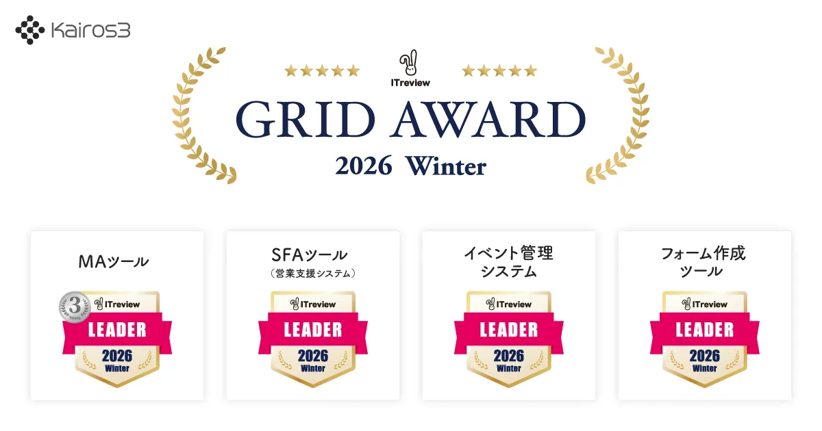 Kairos Marketing, based in Shibuya, Tokyo, has announced that its innovative marketing automation (MA) and sales force automation (SFA) tool, Kairos3, has received the highest accolade of 'Leader' in four categories at the 'ITreview Grid Award 2026 Winter.' This award marks the 13th consecutive quarter that Kairos3 has been designated a 'Leader' in the MA tool category.