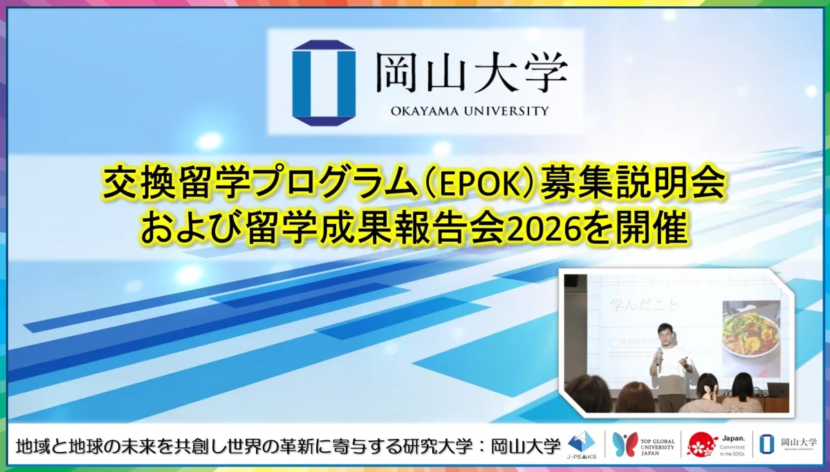 On April 15, 2026, Okayama University in Okayama City, Japan, held an information session regarding its Exchange Program Okayama (EPOK) for students interested in studying abroad. This initiative focuses on encouraging students from all faculties to expand their learning experiences globally.