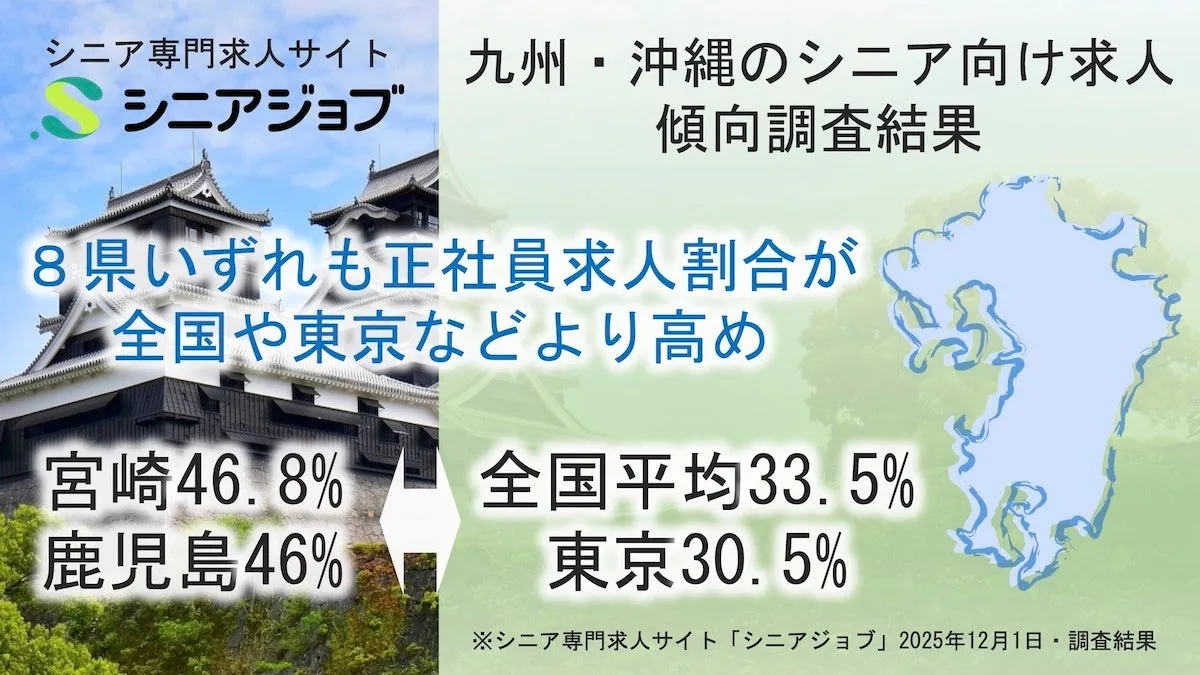 A recent research conducted by Senior Job, a company dedicated to supporting senior employment in Japan, focused on the job market trends for seniors in the Kyushu and Okinawa regions. The survey analyzed the job listings on the Senior Job website across the eight prefectures of Kyushu and Okinawa: Fukuoka, Saga, Nagasaki, Kumamoto, Oita, Miyazaki, Kagoshima, and Okinawa.
