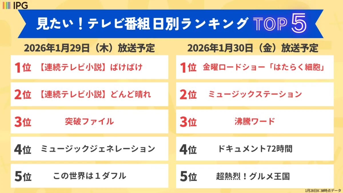 This week, we bring you the latest insights into the TV show rankings for Winter 2026, compiled through the data from the electronic program guide service G-GUIDE by IPG Corporation. As viewers navigate their options for what to watch, our list highlights the most anticipated shows scheduled to air from January 29 to February 3, 2026.