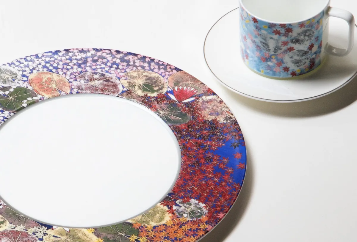 For instance, the show plates used in Noblesse and the cups in Gallery Cafe showcase the talents of renowned Japanese artist Reiji Hiramatsu, known for his vivid techniques using rock pigments and collage. His artwork, depicting nature and tradition, is brought to life on NIKKO’s tableware using advanced transfer printing techniques.