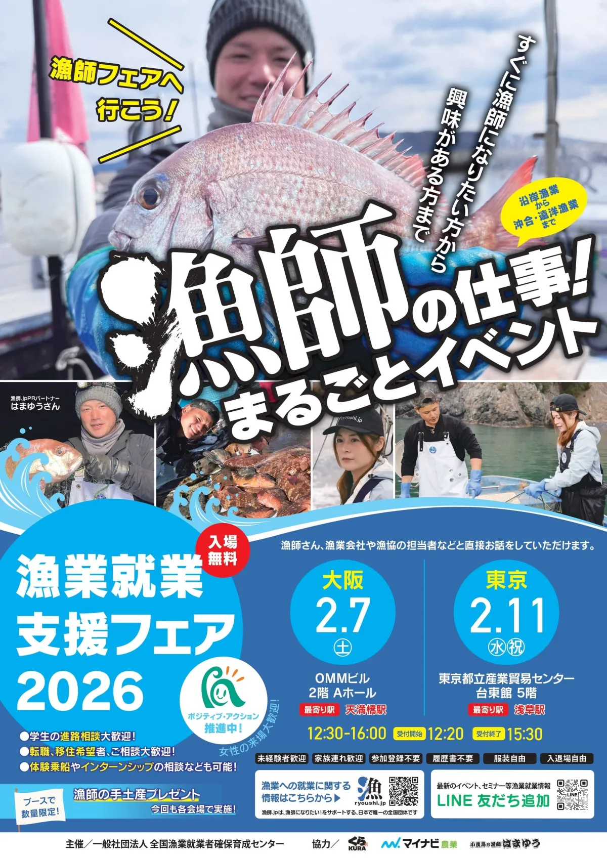 Fisheries Employment Support Fair 2026, taking place in both Osaka and Tokyo. Sponsored by the Japan Fisheries Agency and organized by the Japan Fisheries Employment Development Center (Ryoushi.jp), this event will mark its