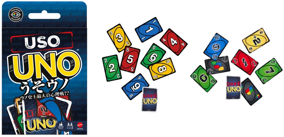 Manufactured by Mattel International, the Japan branch of the global toy giant Mattel, 'Uso Uno' will feature cards that allow players to mislead others about their true values. In this game, players can play 'Uso Uno cards' face down and declare a color or number, but whether that declaration is true or false remains entirely up to them. This element of deception transforms every round into a thrilling psychological battle where the stakes are high, and players must determine if their opponents are being honest or not.