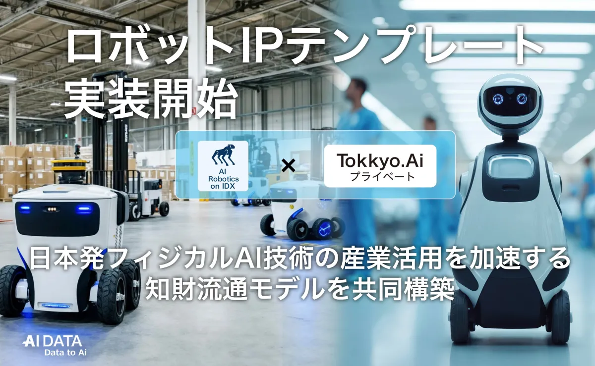The initiative aims to build an infrastructure that streamlines project management from planning to manufacturing, intellectual property acquisition, and management by registering and managing templates of robotics control technologies based on 'Tokkyo.Ai', in conjunction with 'AI Robotics on IDX'.