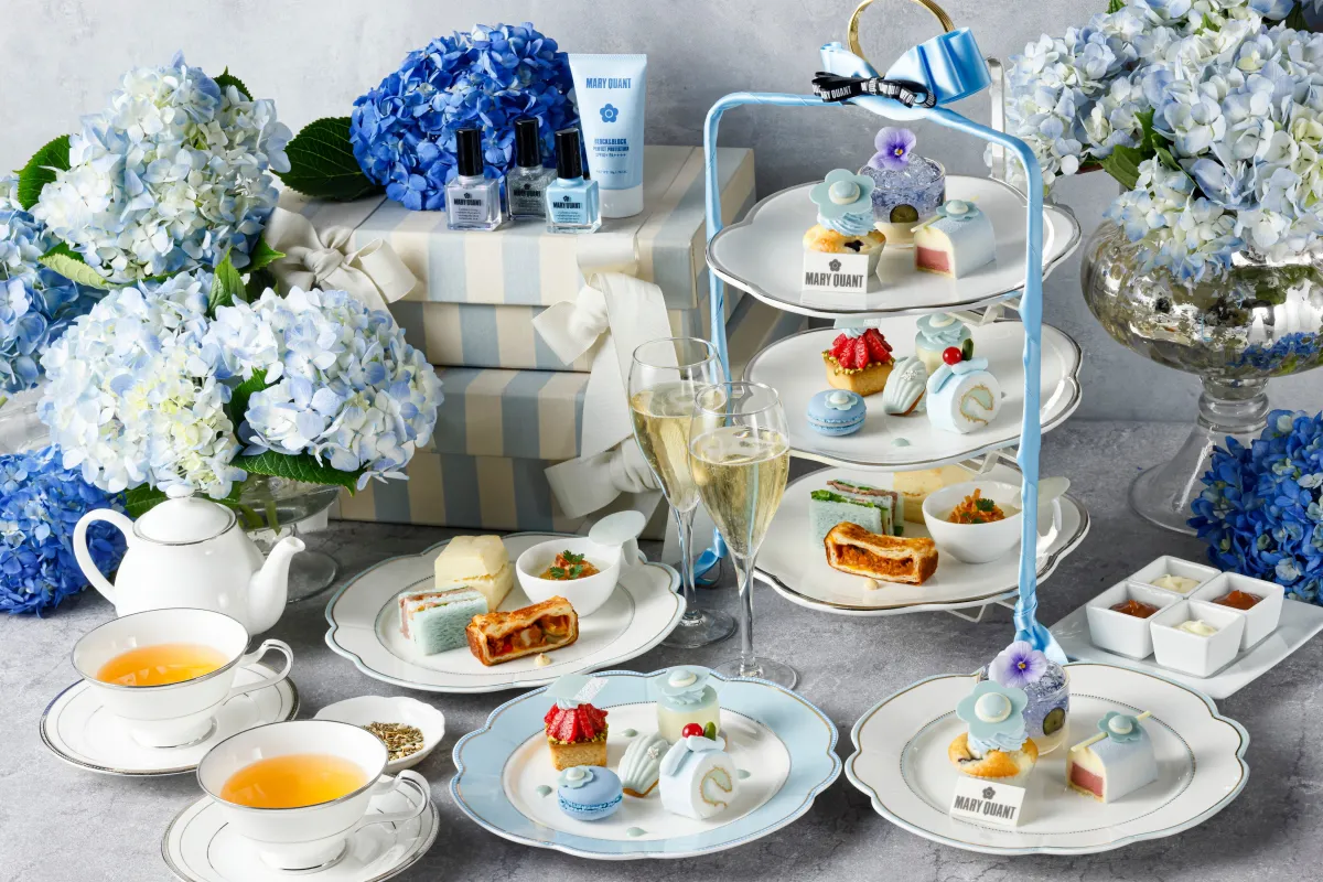 Mary Quant draws inspiration from the MIZUIRO COLLECTION, represented through an elegant afternoon tea experience that captures the essence of a clear blue sky and the delicate hues of early summer hydrangeas.