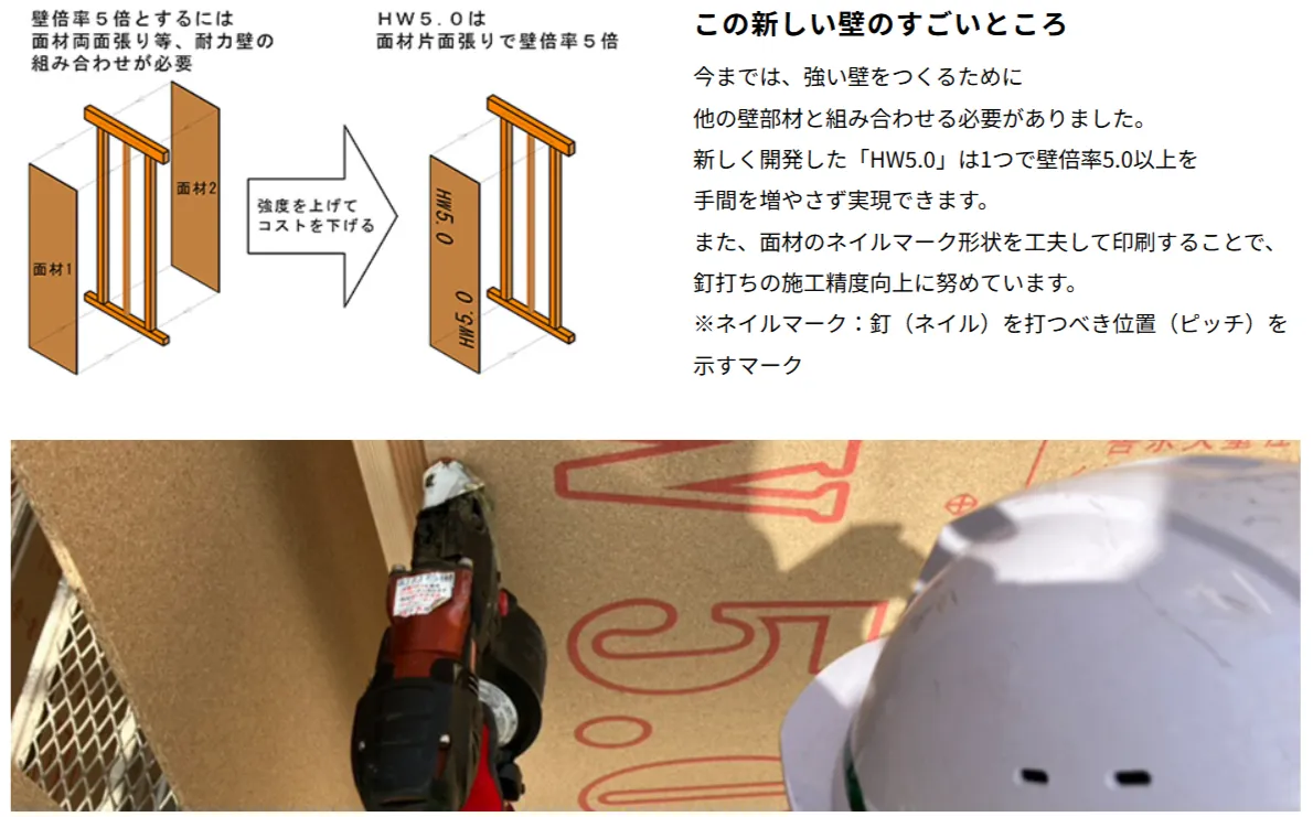 The technologies such as "HW5.0Σ", the nation’s first minister-certified durability wall utilizing wooden diagonal bracing, and the "HT Base Integrated Foundation Method", which balances construction efficiency with quality enhancement, are presented with clarity. This section explains the background of these innovations, inspired by practical challenges faced on-site, and how they contribute to improved housing quality.