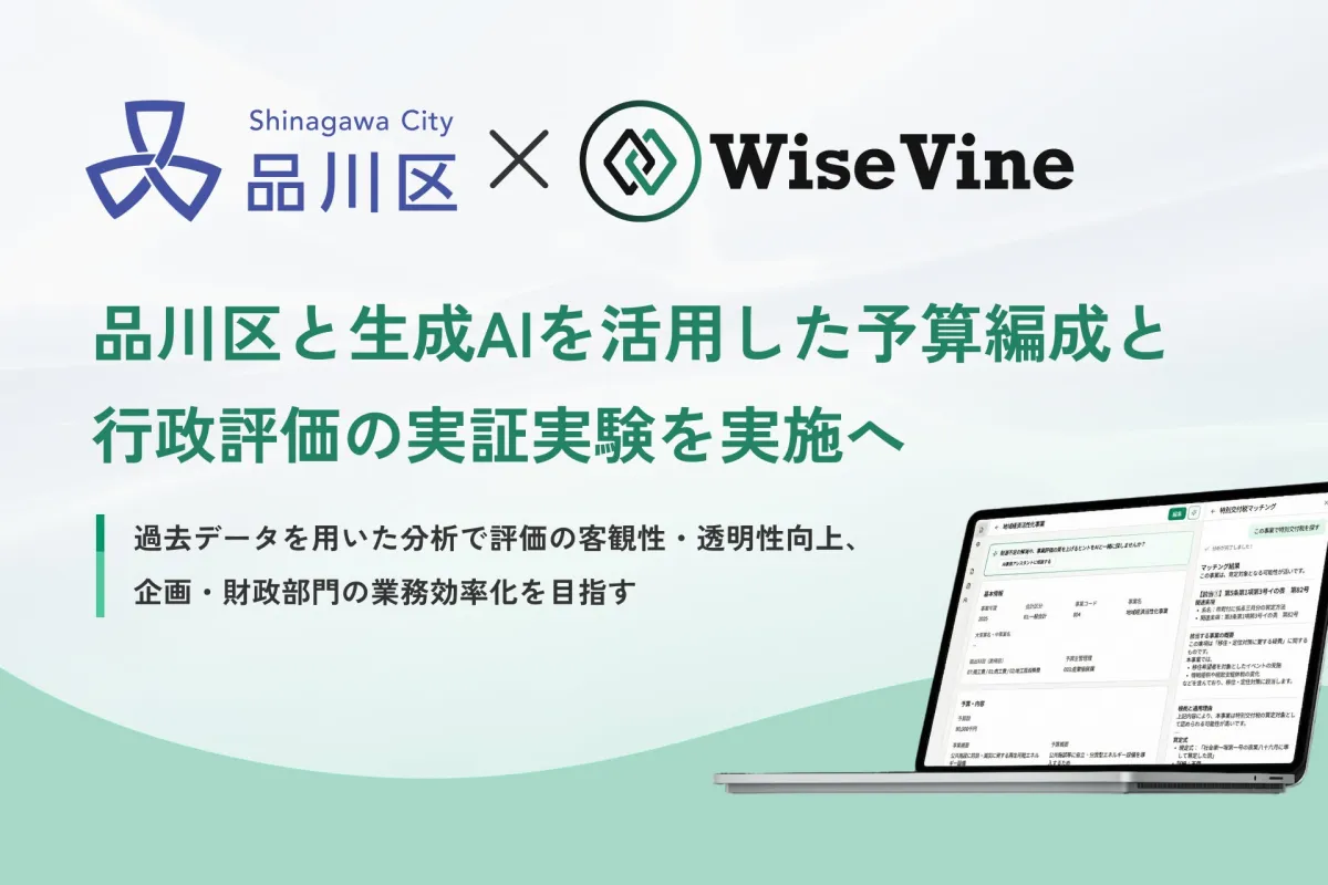 WiseVine has been at the forefront of fostering digital transformation (DX) in municipal budgeting processes. Approved as a partner in the city's open innovation platform, “Shinagawa City Lab,” the company will work hand in hand with local officials to explore the potential applications of generative AI within the realm of public administration.