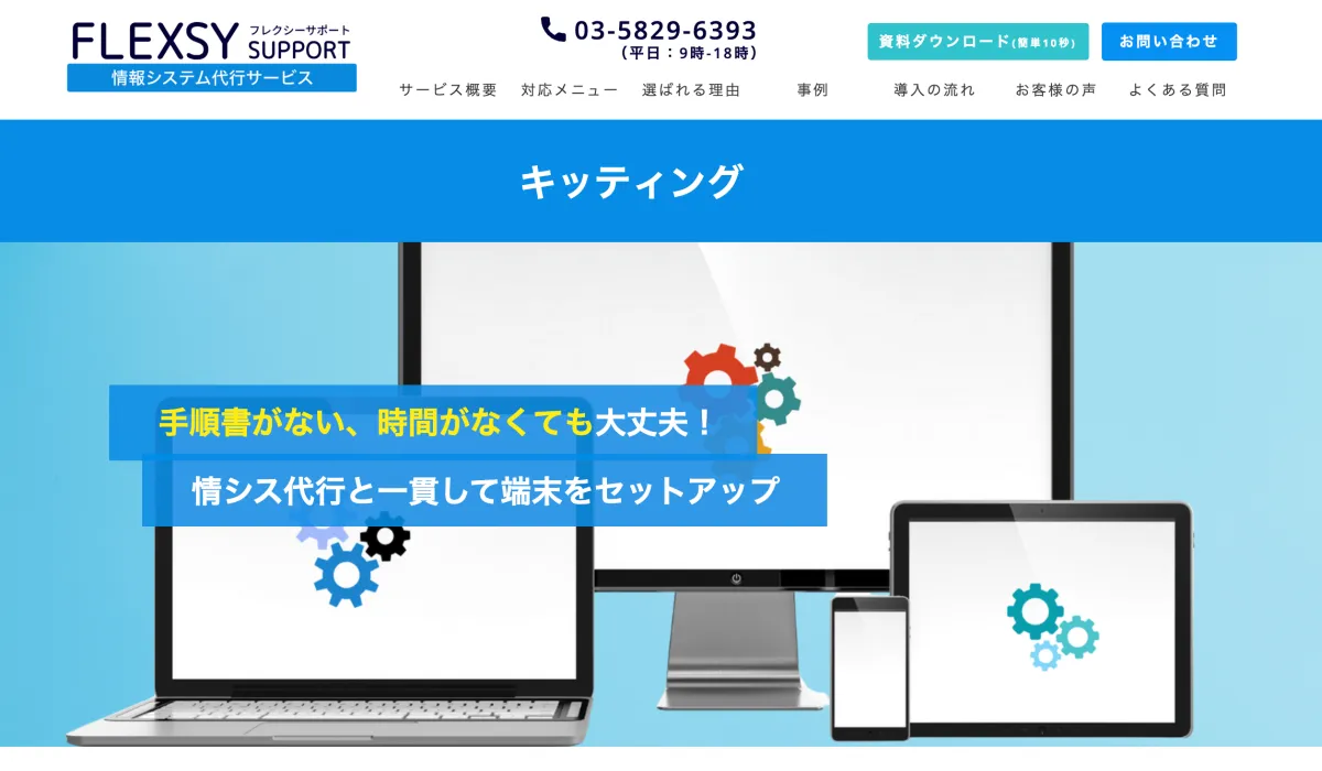 The newly established kitting support page (https://flexsy-support.com/itservice/kitting) breaks down the complex kitting processes into manageable tasks, making it clear to users what can be expected from the service. Recognizing the various issues faced by IT departments—ranging from single-person IT operations (one-person IT) to mixed IT responsibilities—the page aims to simplify device setup, thus reducing the dependence on individual knowledge.