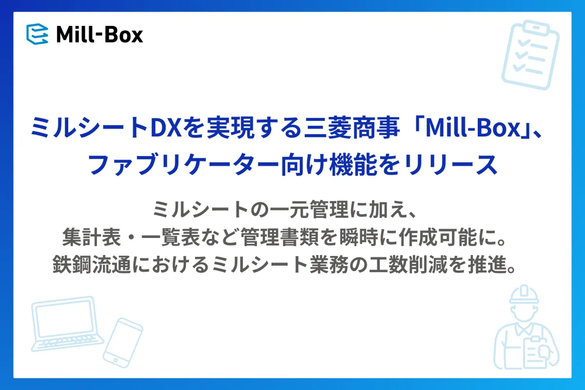 Mitsubishi Corporation's Material Solutions Group has recently released an upgraded version of its innovative digital mill sheet management service, Mill-Box. This new enhancement focuses specifically on improving functionalities for fabricators in the steel industry.