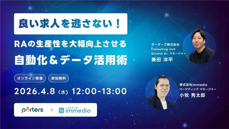 To address these challenges, Porters Corporation, in collaboration with Immedio, is hosting a free online seminar on April 8, 2026, titled "Don't Miss Out on Great Job Offers! Enhancing RA Productivity Through Automation and Data Utilization." This seminar aims to present innovative solutions to improve the recruitment process significantly.