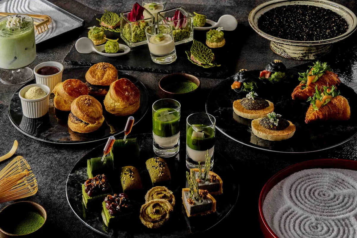 The afternoon tea is designed with an adult palate in mind, focusing on the natural flavors of high-quality ingredients rather than pure sweetness. Guests will be able to savor the harmonious blend of matcha's slight bitterness and sesame's deep complexity. Each finely crafted dish showcases a variety of flavors and textures that transition elegantly from plate to plate, creating an unforgettable experience.
