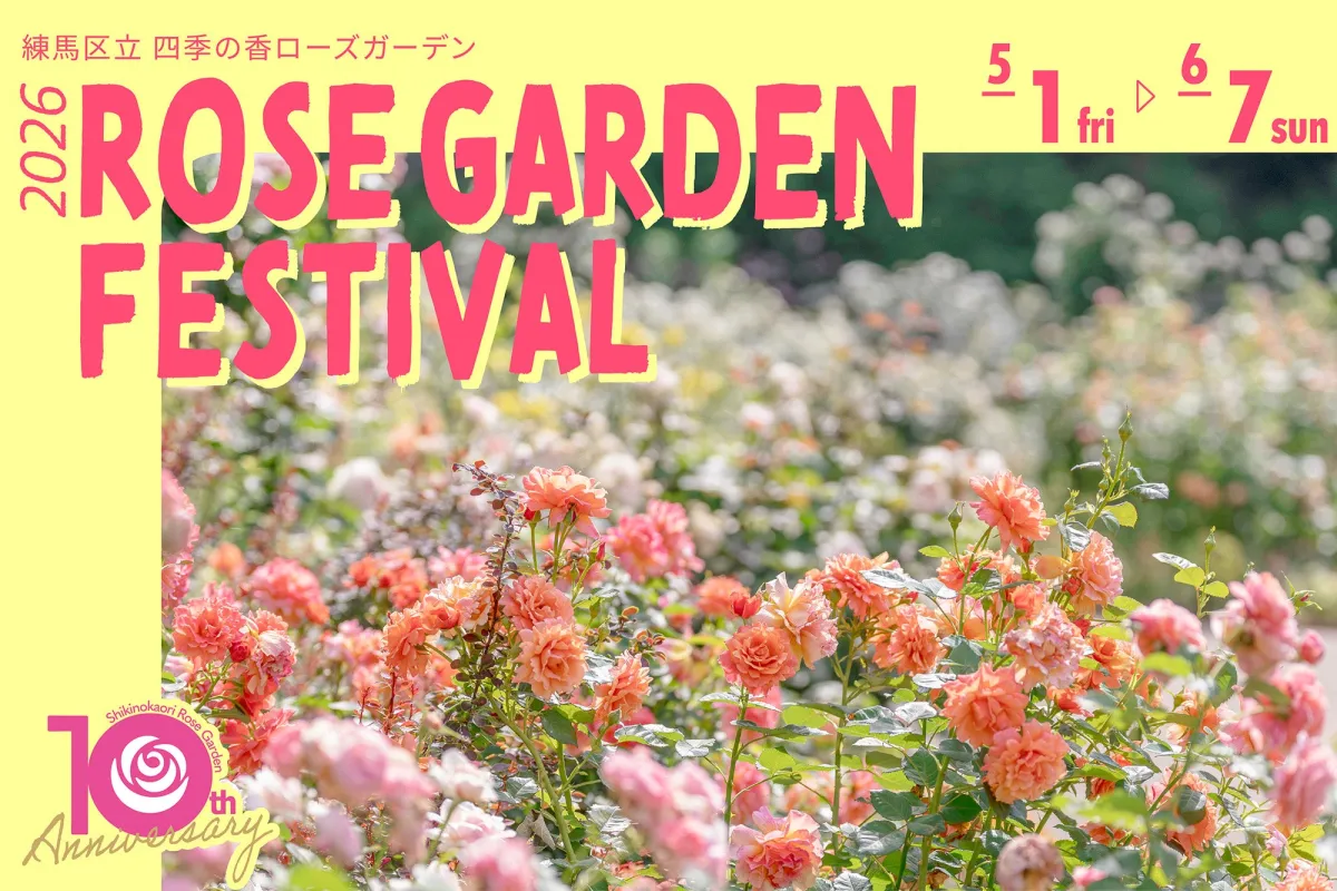 Nerima's Shiki no Kaori Rose Garden is thrilled to announce the '2026 Rose Garden Festival,' celebrating its 10th anniversary. From May 1st to June 7th, this festival will showcase a stunning display of 333 varieties and 573 rose bushes in full bloom, inviting visitors to enjoy the beauty of springtime in the garden. The vibrancy of the roses, particularly during their peak in mid to late May, promises an enchanting experience for all.