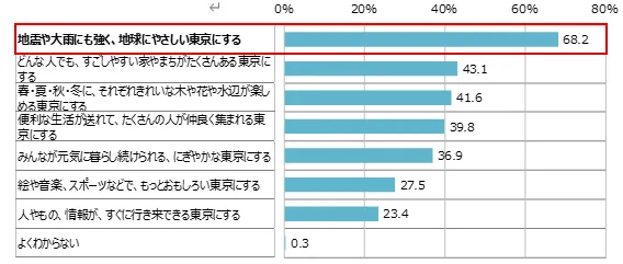 The fourth survey focused on several key areas including future urban development in Tokyo. Children were asked to identify which of the following seven aspects they deemed most important: